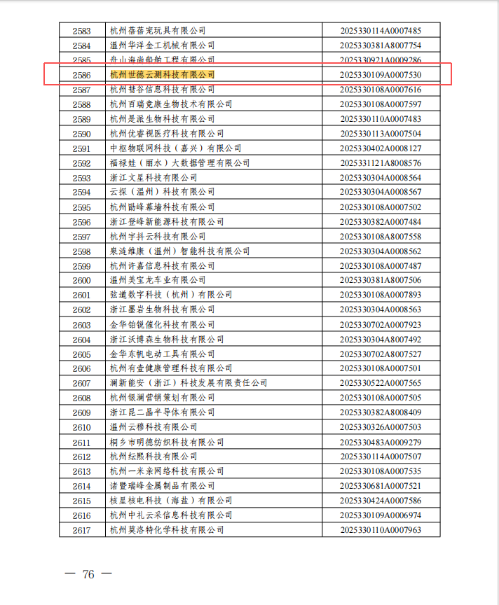近日,浙江省经济和信息化厅正式公布2025年第四批入库国家科技型中小企业名单。世德云测,成功通过国家科技型中小企业认定,正式纳入国家科技型中小企业信息库!